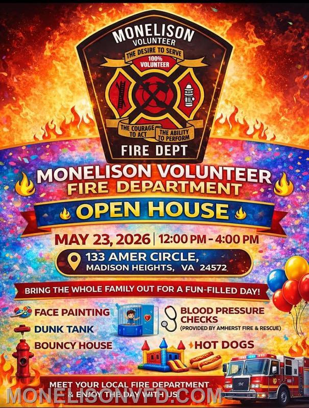 | The Monelison Volunteer Fire Department invites community members to attend an Open House on Saturday, May 23rd, from 12:00 pm to 4:00 pm. The event will take place at Station 1, located at 133 Amer Circle.