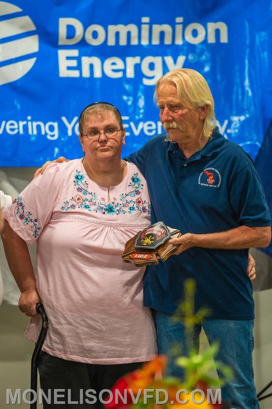 The ceremony concluded with a special recognition. In July 2025, the department lost Assistant Chief Mack Mays. Chief Mays was honored for his 15 years of service. His longtime girlfriend Linda was present to accept his award.